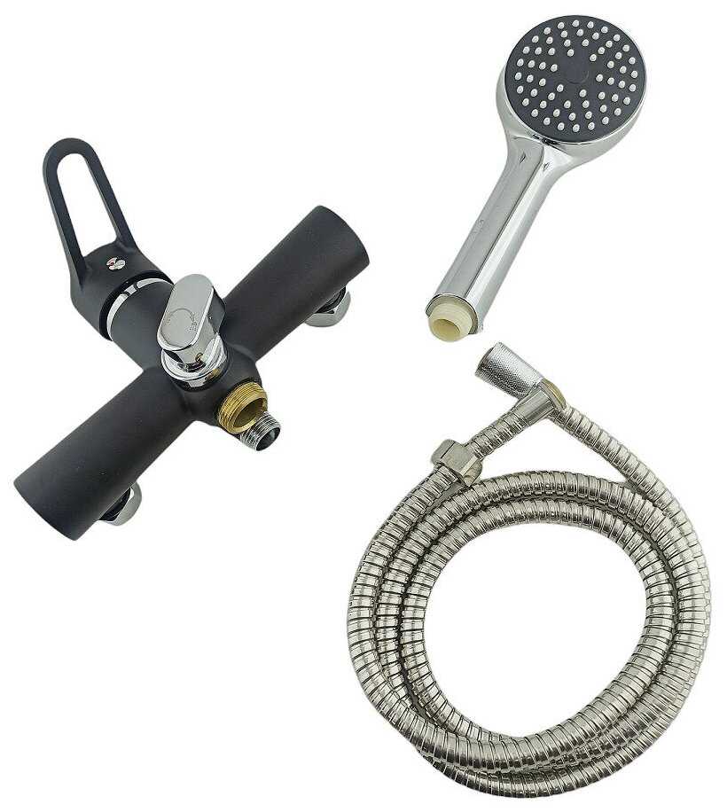 - комплектация: -Смеситель; -Лейка для душа; -Шланг для душа 150 см; -Держатель для лейки; -Отражатели 2шт; -Эксцентрики 2шт.