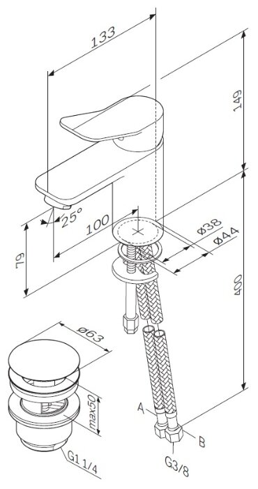 AM.PM Смеситель для умывальника Am. Pm F90A03000 Gem с гиг. душем, излив 99 мм, хром, шт