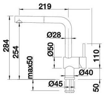 - длина излива: 219 мм.