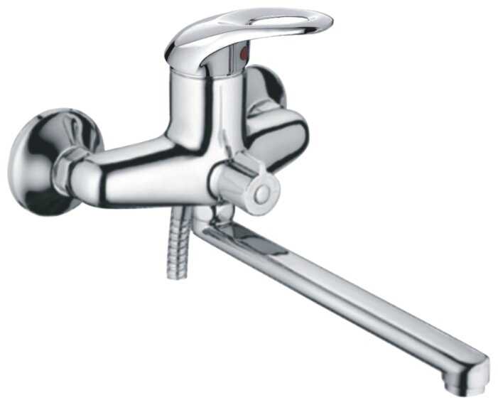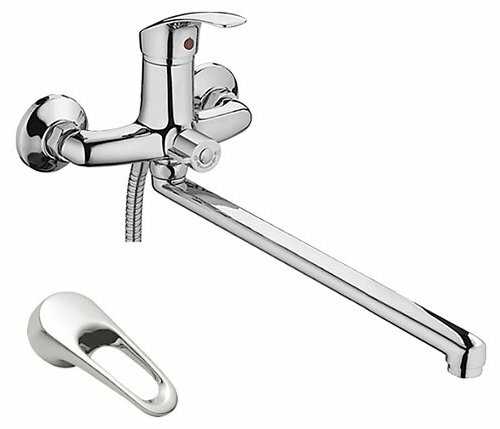 Cron Смеситель для ванны с длинным (30 см) поворотным изливом и душевой лейкой, хромированный