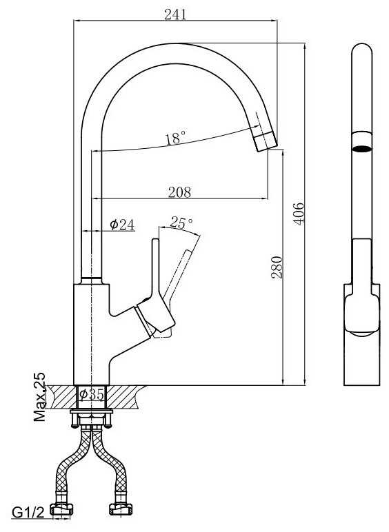 - тип излива: поворотный