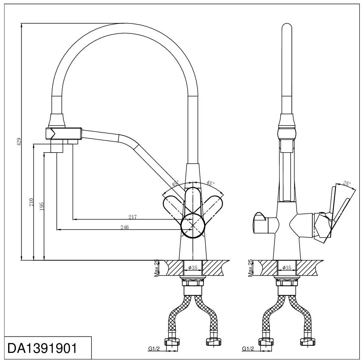 - тип подводки: гибкая