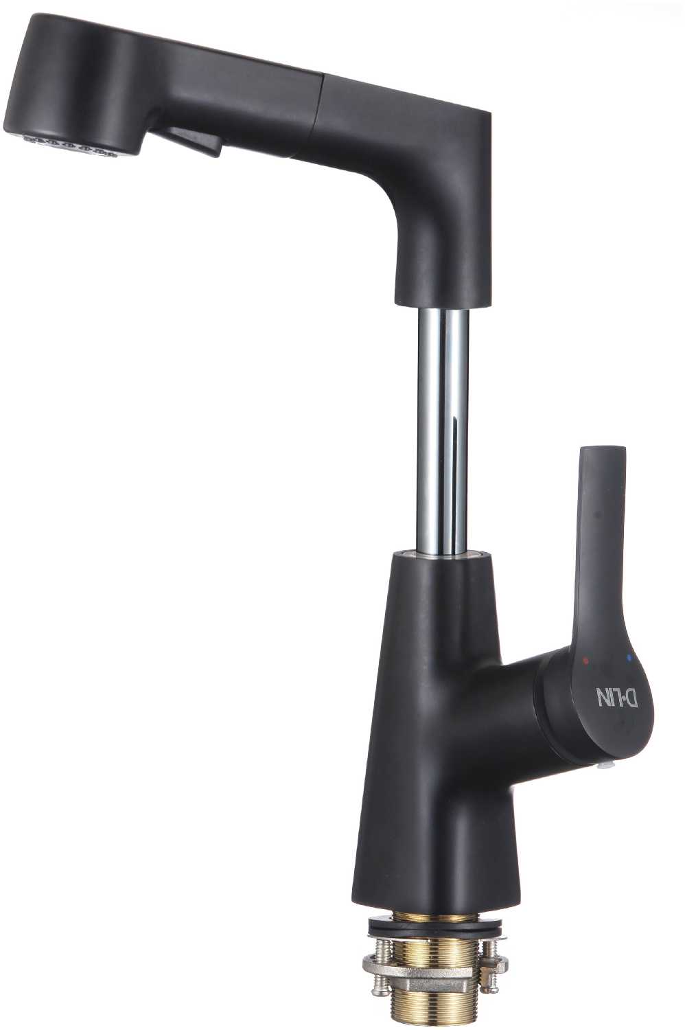 D-LIN D158374-A, с вытяжным изливом. 2-х режимная лейка, черный (матовый).