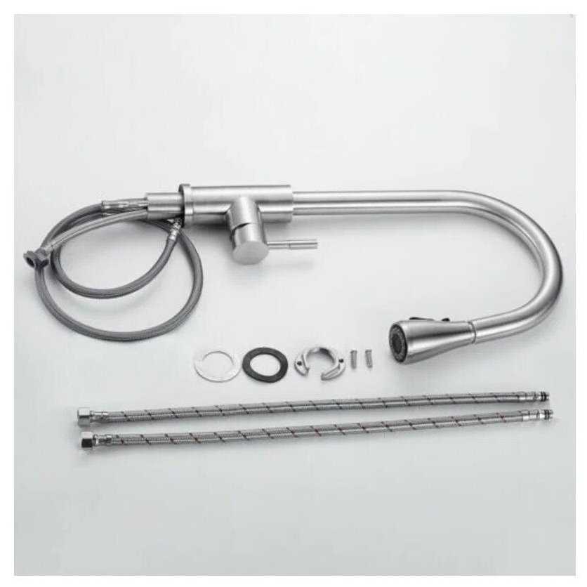 D-LIN Смеситель для кухни с выдвижной лейкой и высоким изливом D-Lin
