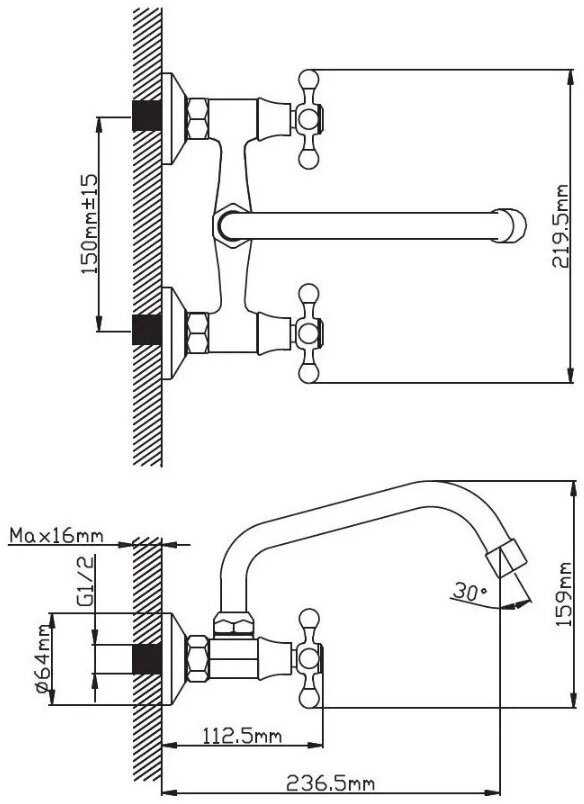 Diadonna D460-65 настенный, с длиным поворотным изливом, керамические кран-буксы, хром