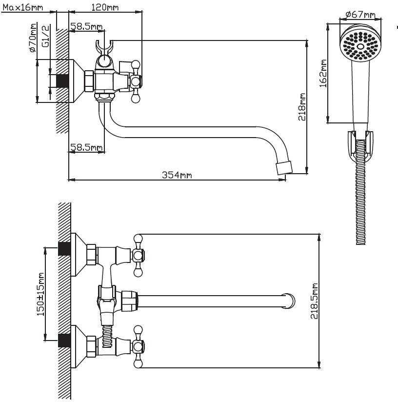 - душевой хромированный шланг в металлической оплётке 1/2"х1/2" длиной 150 см