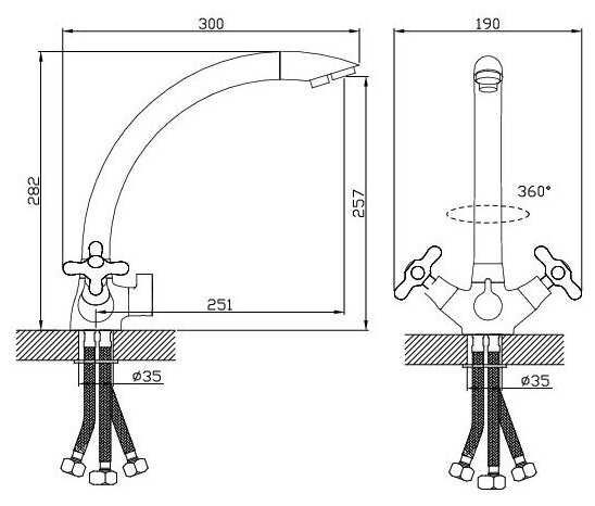 Diadonna D49-150 длинный поворотный излив, картридж 35 мм, хром, крепление гайка