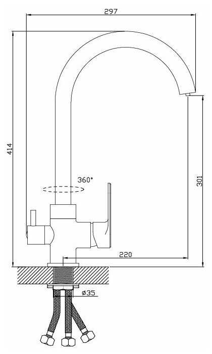 Diadonna D80-221111 одноручковый, с длинным поворотным изливом, картридж 35 мм, хром