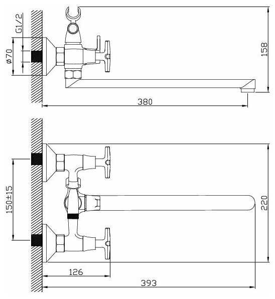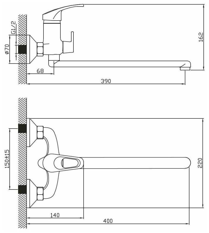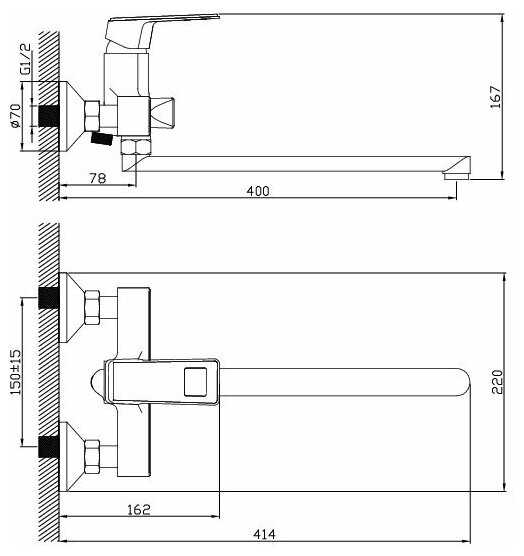 Diadonna D10-150 одноручковый, хром, картридж 35 мм, крепление 2 шпильки
