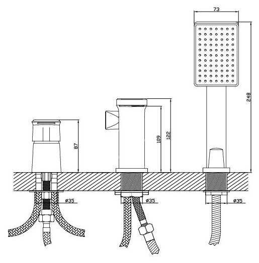 Diadonna D80-111106 одноручковый на три отверстия, картридж 35 мм, хром