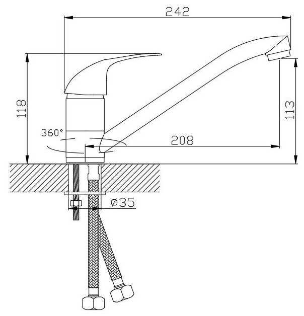 Diadonna D58-150 с гибким изливом, картридж 35 мм, хром, крепление гайка