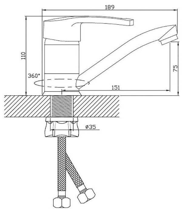 Diadonna D86-437117BL с гибким изливом, одноручковый, чёрный, крепление гайка