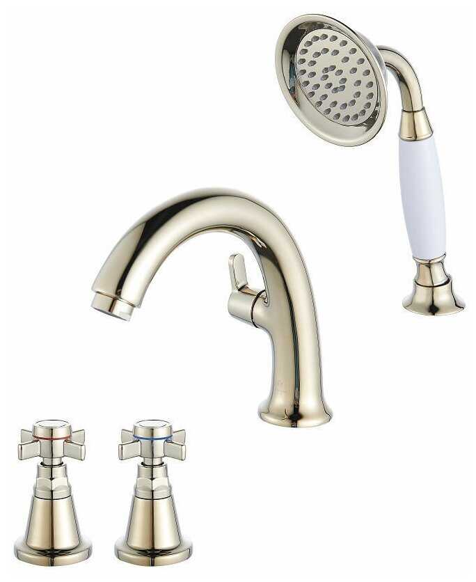 Diadonna Смеситель с монтажом на борт акриловой ванны с выдвижной 2- функциональной лейкой, золотистый, D352J