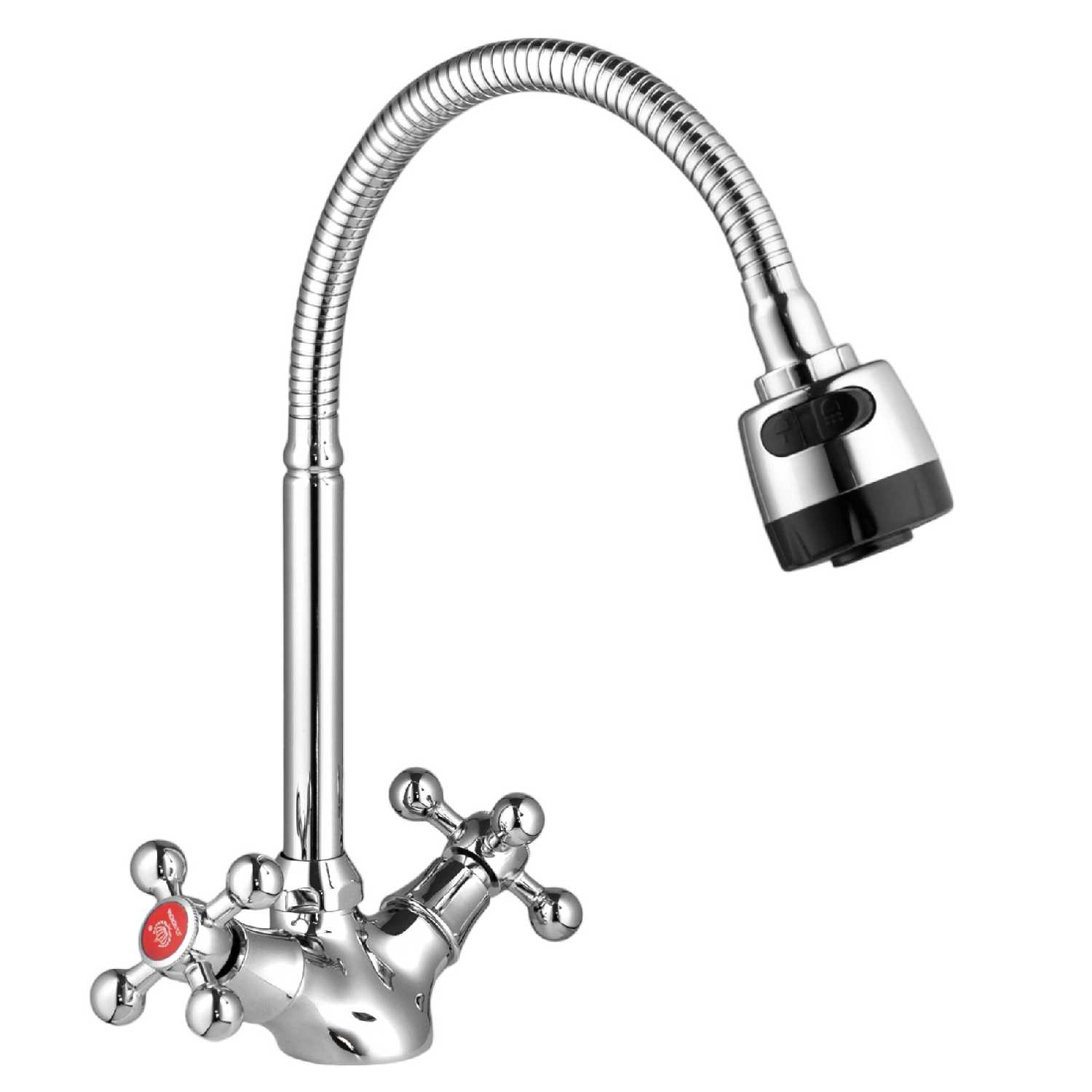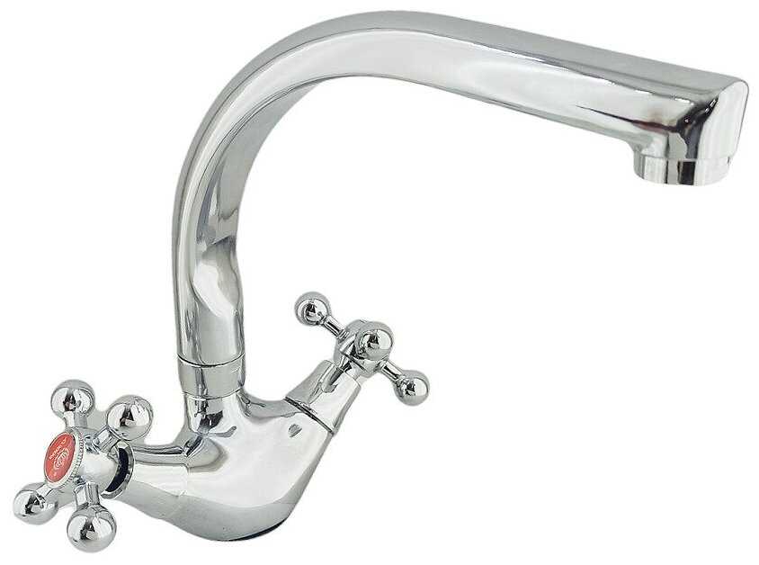 Do.Korona Смеситель для кухни/ Dokorona двухвентильный из латуни, крепление на гайке, цвет глянцевый хром.
