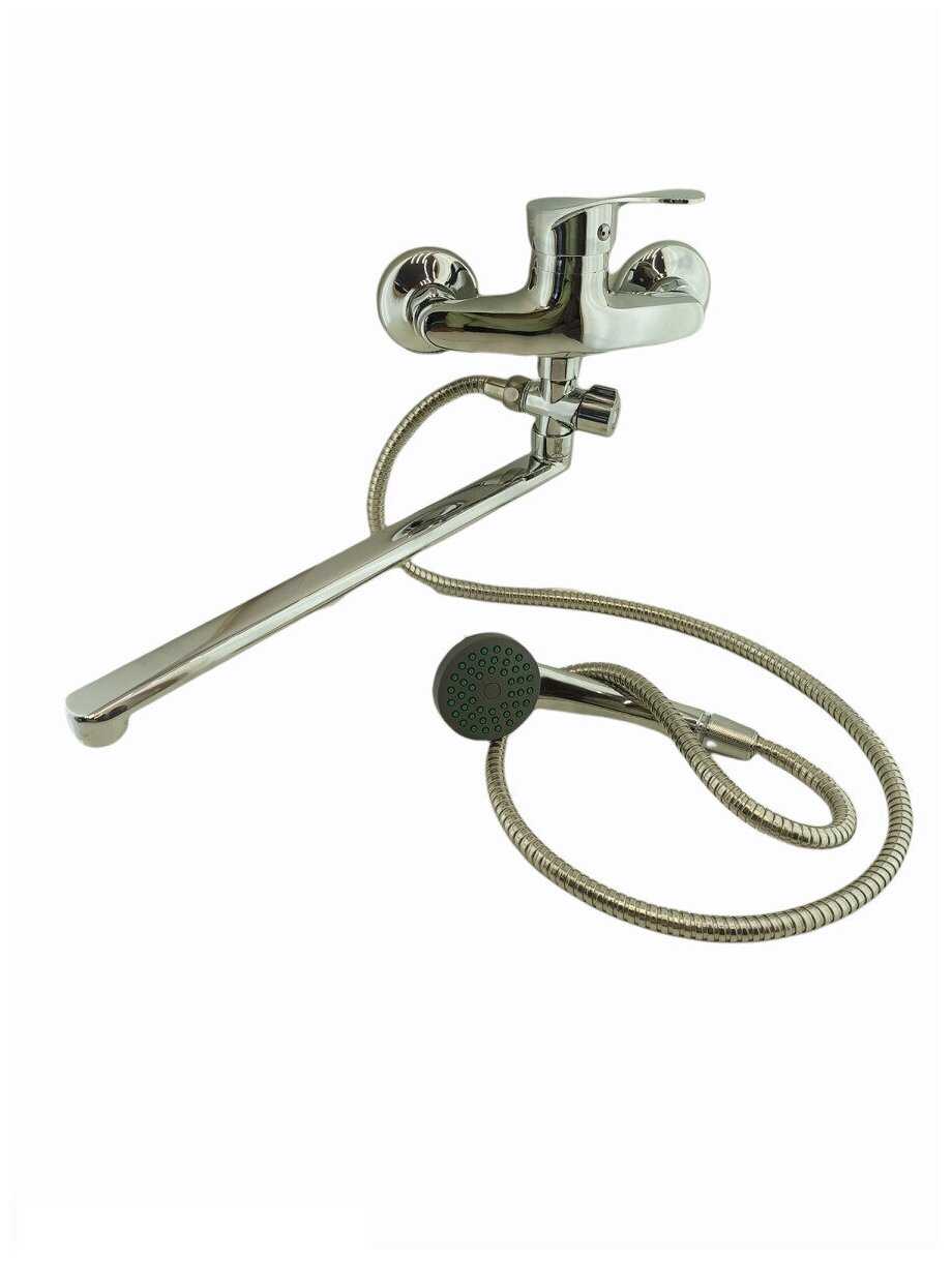 Do.Korona Смеситель для ванны Dokorona однорычажный, поворотный плоский излив, 35 см. Переключатель с керамическими пластинами.