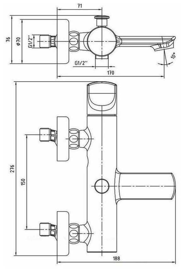 E.C.A. смеситель для ванны 2 режима (102167205C1EX-KDE)