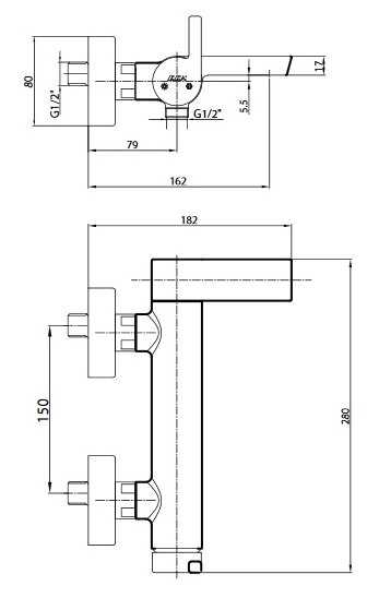 E.C.A. 102167216EX-KDE термостатический смеситель для ванны,2 режима(внешняя часть)