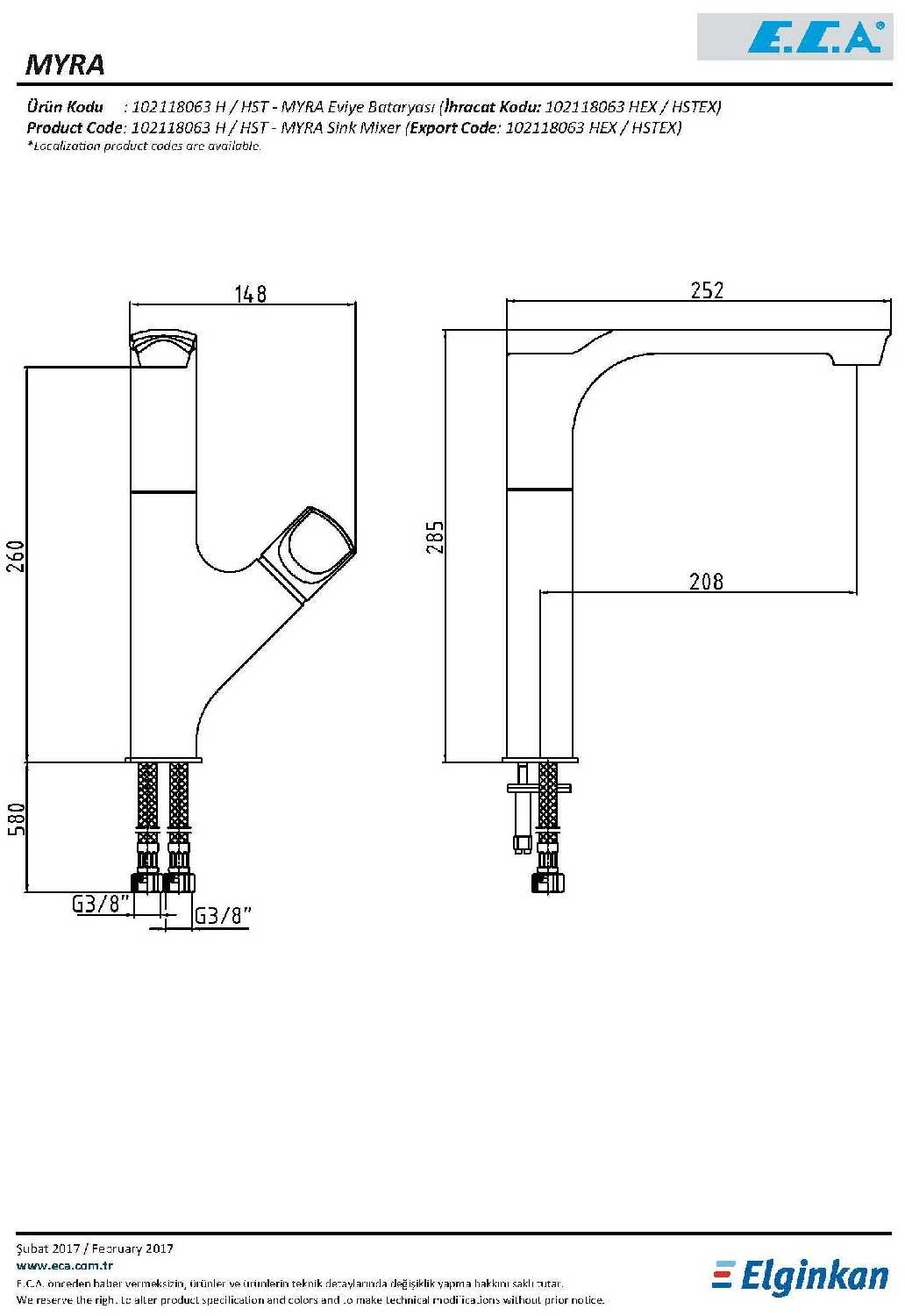 E.C.A. Tiera 103388/103488/103588/104888, рычажный