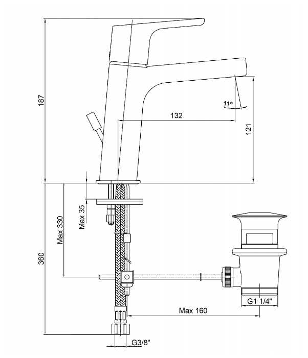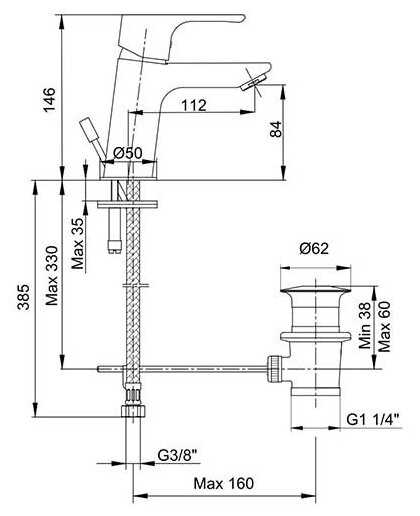 E.C.A. Смеситель для раковины донным с клапаном Eca Tiera 102188014EX