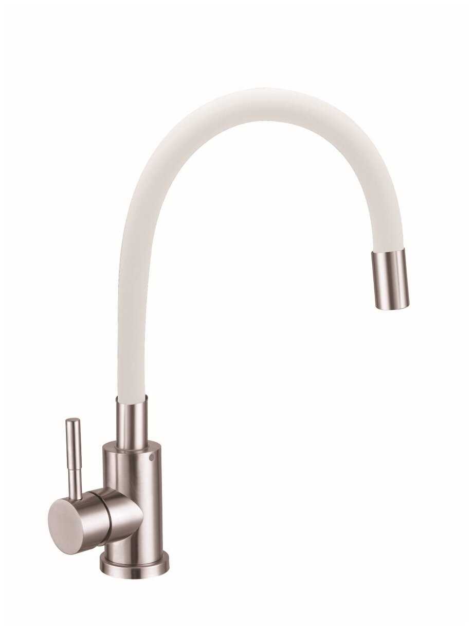 ESKO Смеситель Snake для кухни гибкий излив белый, нержавеющая сталь
