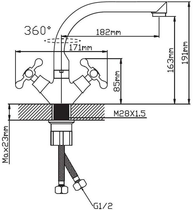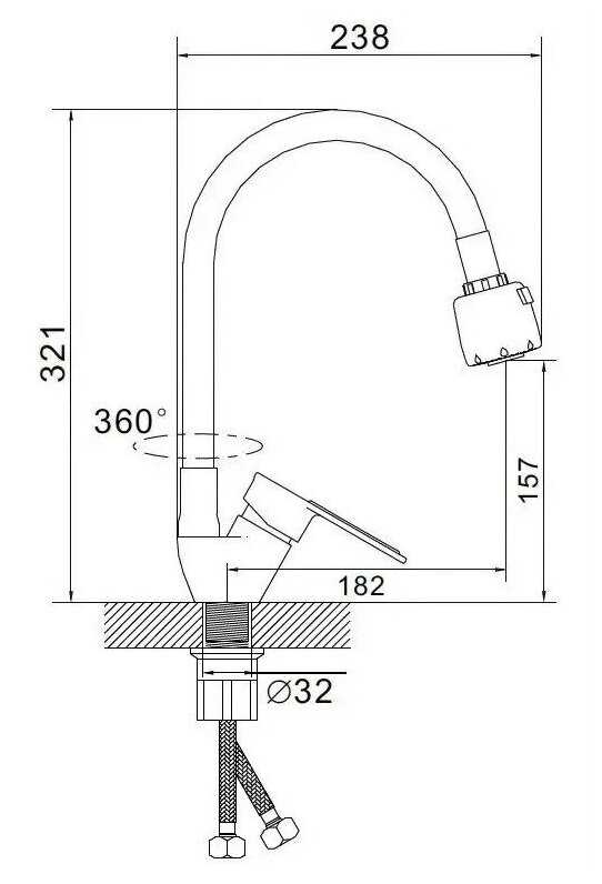 Эверест B54-032 с гибким изливом, картридж 25 мм, хром, крепление шпилька