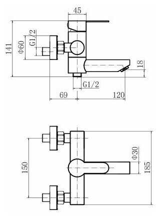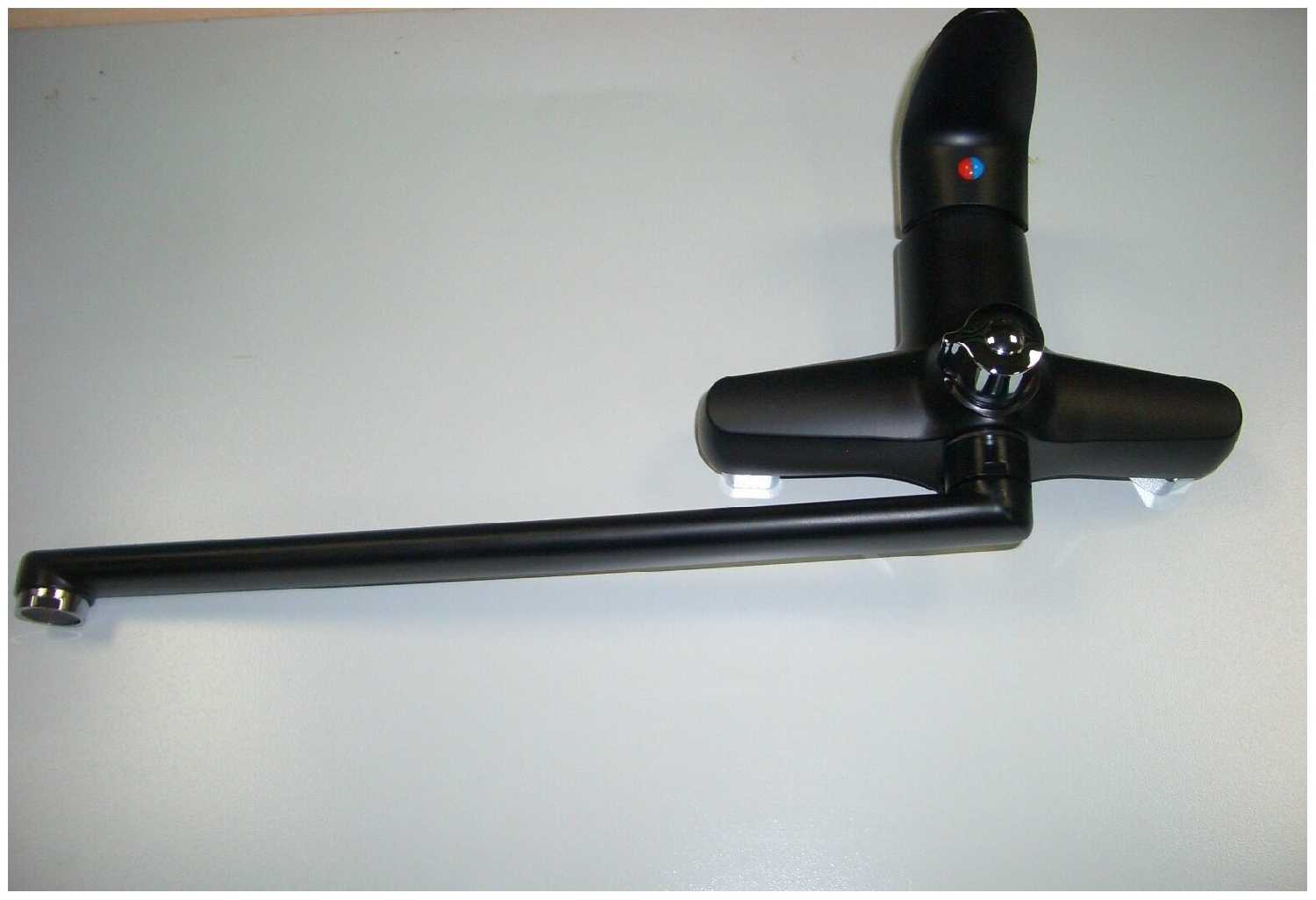 Fashun PL2205-7 Смеситель д/ванной, ABS пластик, длинный излив из латуни, лейка, шланг, крепление на стену, кран-буксы, чёрный