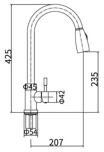 Fashun для кухни одноречажный из нержавеющей стали с гибким изливом и двухрежимным аэратором A54401-3