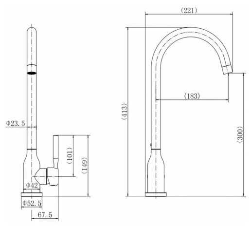 Fashun Фашун) Смеситель для кухни (мойки) с высоким поворотным изливом, нержавеющая сталь A54023