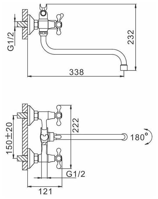 Frap для ванны, кер. S-обр. излив 300мм, F2208-2