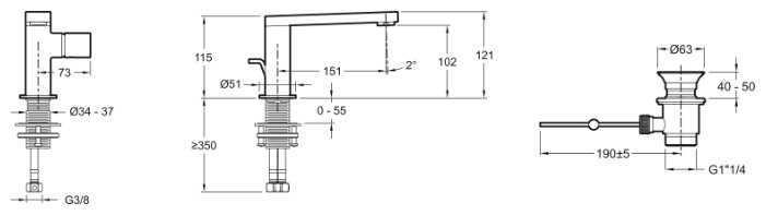 Jacob Delafon Singulier E98708-CP + 98699D, рычажный