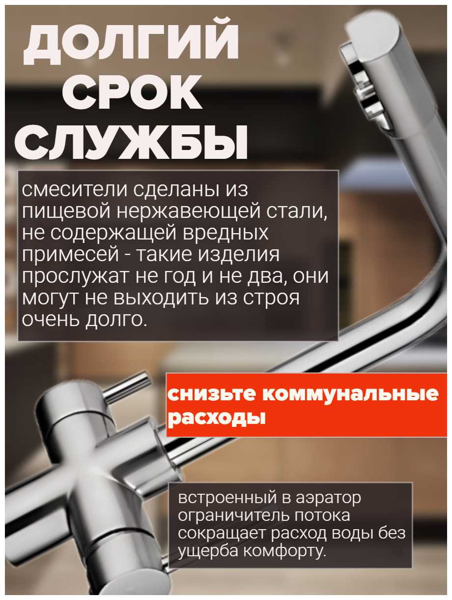 6.4/10 балловKOGGO Смеситель для кухонной мойки под фильтр с краном для питьевой воды (поворотный излив)