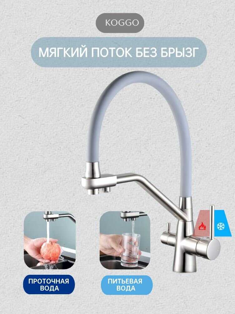 7.3/10 балловKOGGO Смеситель для кухонной мойки под фильтр с краном для питьевой воды и гибким изливом