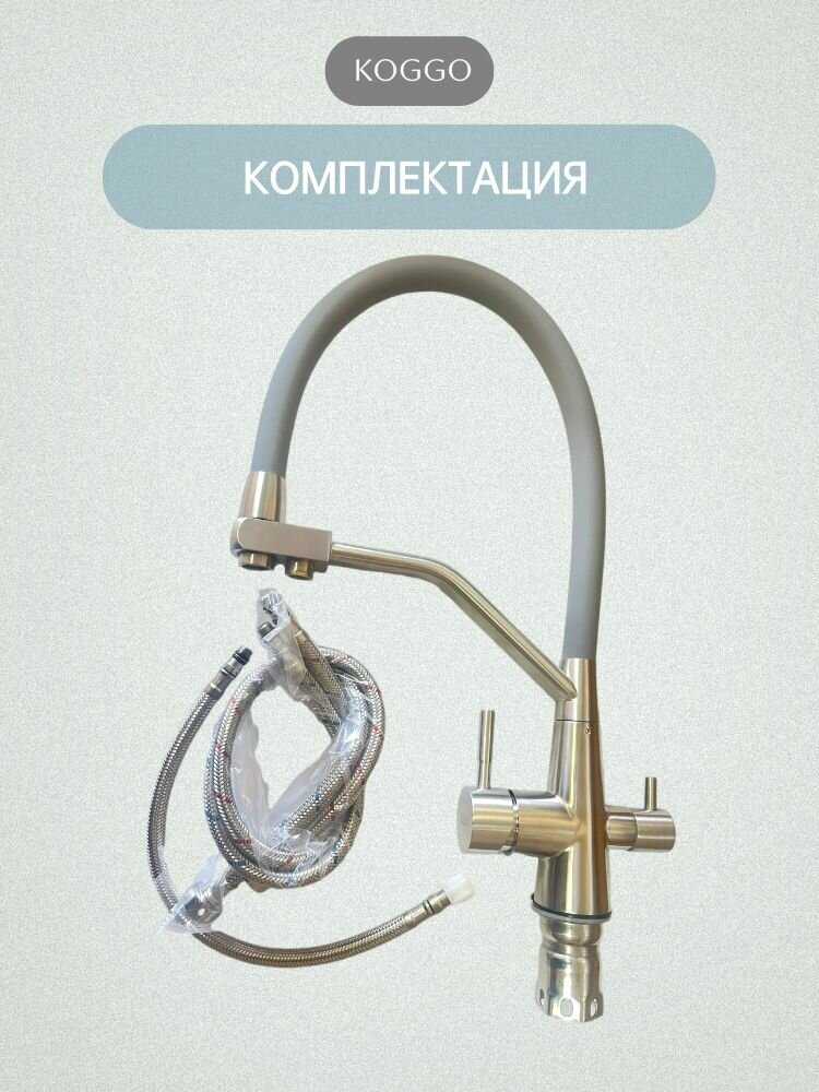 7.3/10 балловKOGGO Смеситель для кухонной мойки под фильтр с краном для питьевой воды и гибким изливом