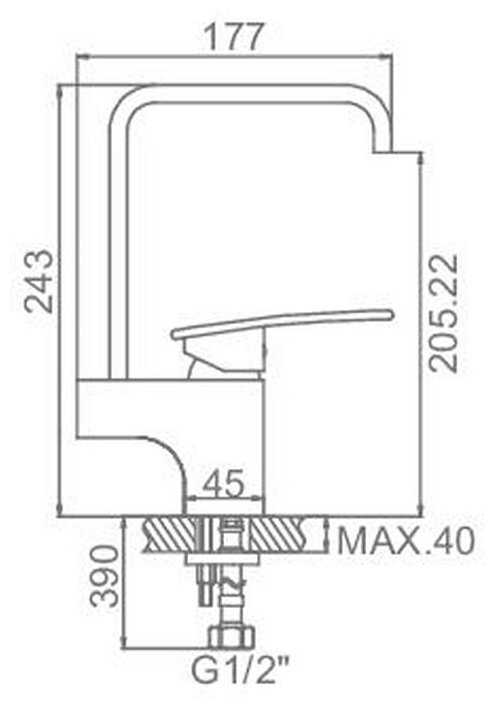 - длина излива: 177 мм.