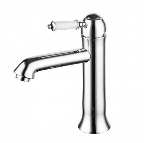 - комплектация: корпус смесителя (латунь) с керамическим картриджем (присоединительный размер -1/2”); винт (3 шт.); декоративная металлическая накладка; излив; металлическая рукоятка; защитный кожух (2 шт.); крышка донного клапана; наружная часть донного клапана; уплотнительное кольцо (2 шт.); внутренняя часть донного клапана; крепежная шпилька; паспорт изделия; гарантийный талон