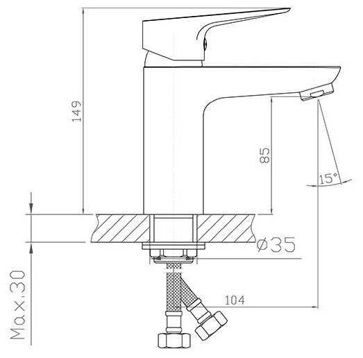 - комплектация: смеситель для раковины -1шт; гибкая подводка -2шт; монтажный набор