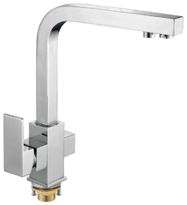 Oute цвет хром глянцевый, однорычажный, с отдельным выходом под фильтр, с аэратором. Излив: высокий, поворотный. Монтаж на одно отверстие, на гайке, гибкая подводка 1/2. Тип картриджа: экономичный. Материал: латунь.