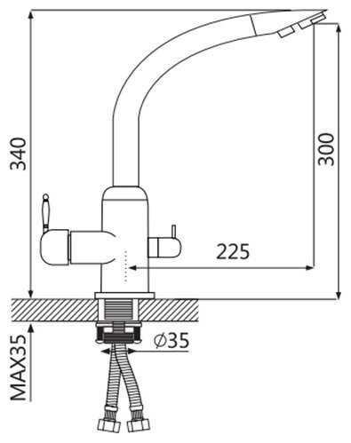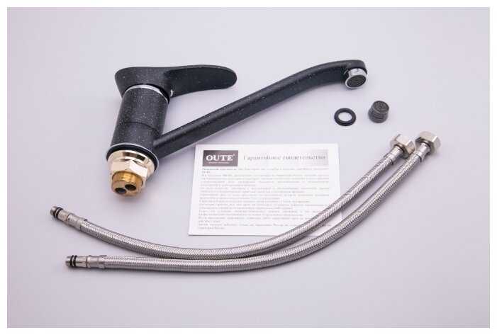 Oute цвет черный, однорычажный, с отдельным выходом под фильтр. Излив: высокий, поворотный, на гайке. Материал: латунь