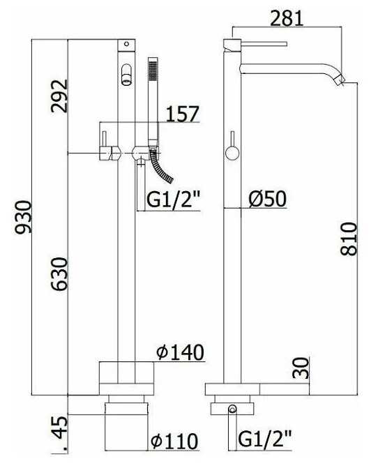 Paffoni Шланг PVC cm.150 1/2" с наконеч. Конусными, черный ZFLO071NO