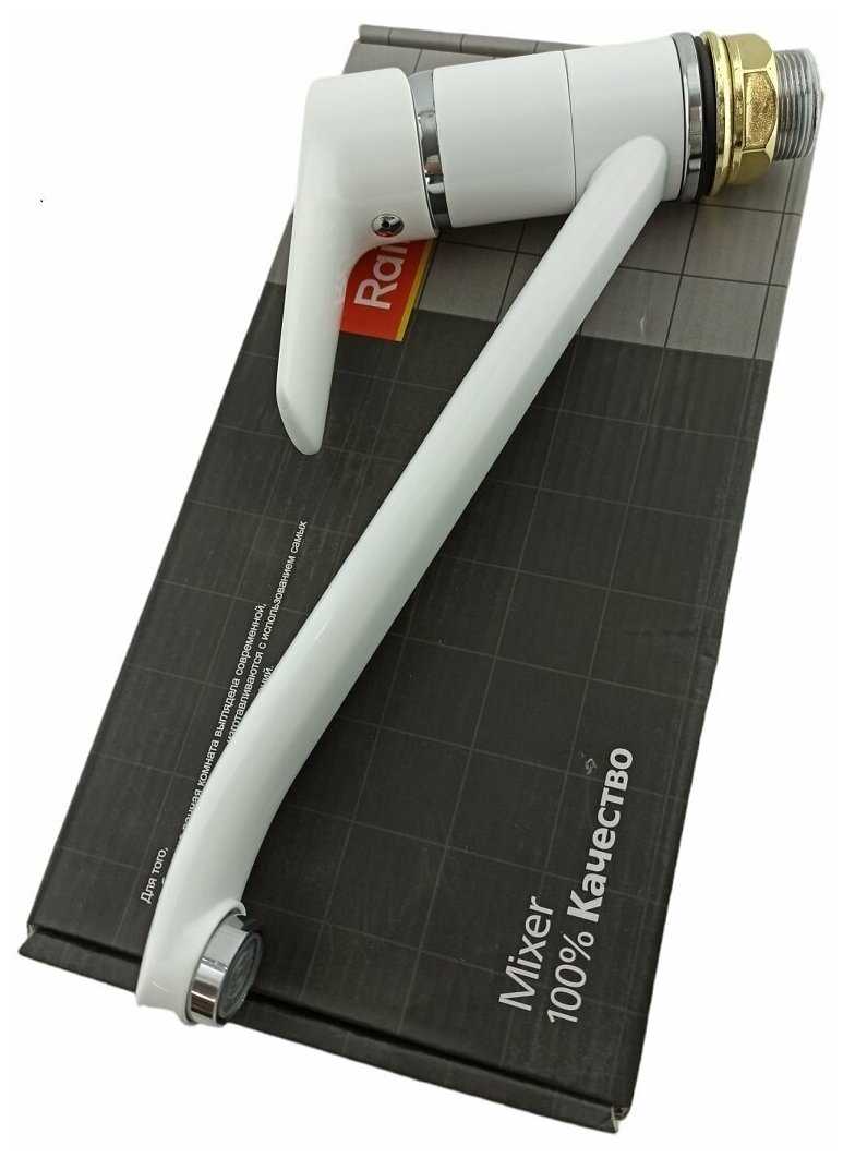 Rainsberg Смеситель для кухни OUTE R2003KF белый, однорычажный, с аэратором, с поворотным изливом. Монтаж на одно отверстие, на гвйке.