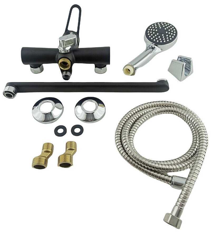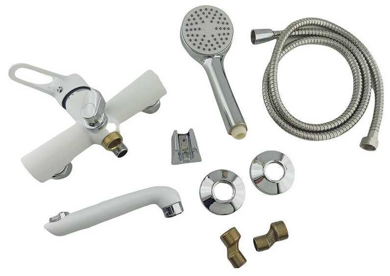 - комплектация: -Смеситель; -Лейка для душа; -Шланг для душа 150 см; -Держатель для лейки; -Отражатели 2шт; -Эксцентрики 2шт.