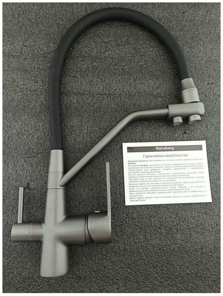 6/10 балловRainsberg корпус цвета титан с силиконовым гибким черным изливом, однорычажный,с отдельным выходом под фильтр. Цвет: Титан с черным изливом