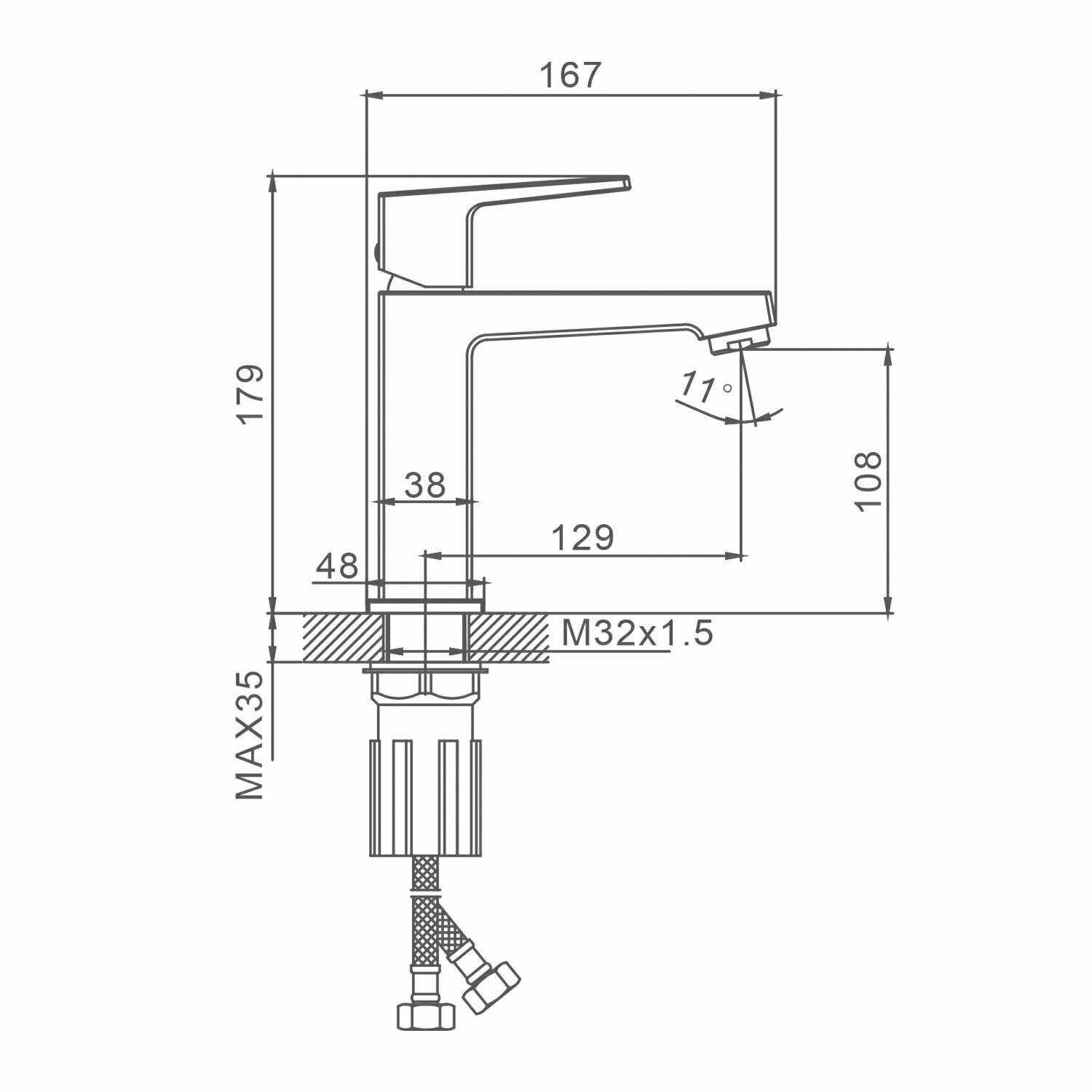 - Длина излива: 129 мм
