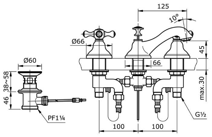 TOTO Curio Смеситель для раковины на 3 отв, хром