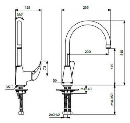- тип излива: поворотный