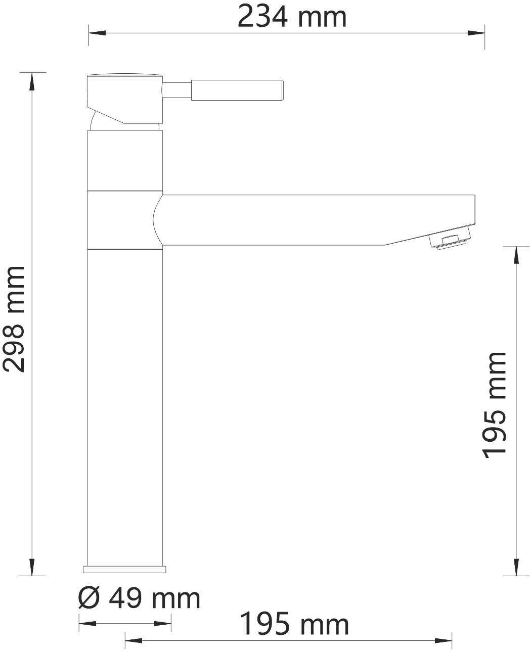 - высота излива: 195 мм.