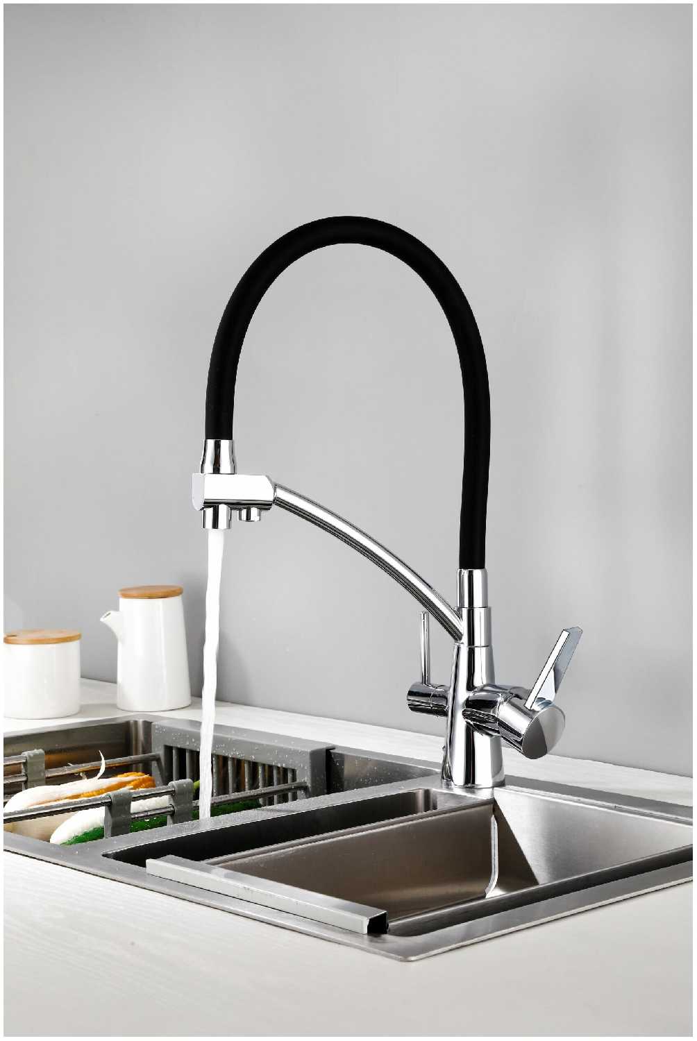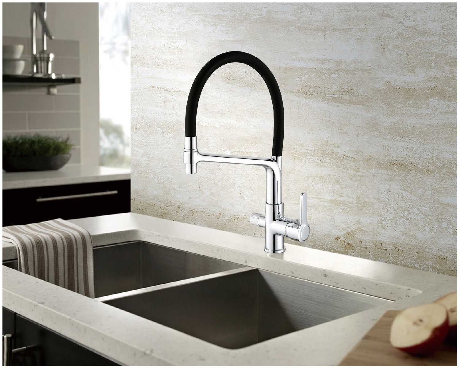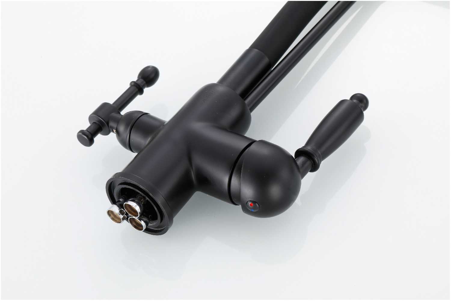 Zdian Смеситель для кухни с гибким изливом и краном для фильтрованной воды / под фильтр / чёрный