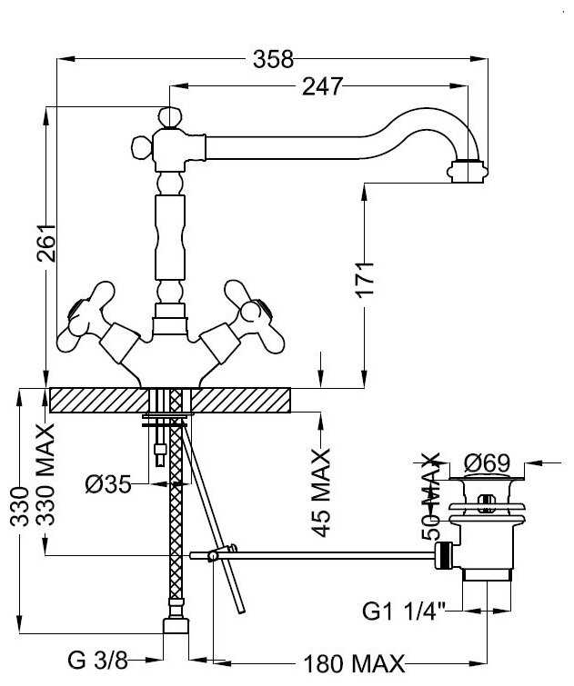 Zipponi MONET 2-вентильный с донным клапаном, MN315CR-051