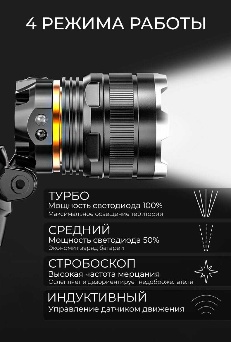 Отзывы о Фонарь налобный аккумуляторный светодиодный мощный (18650)