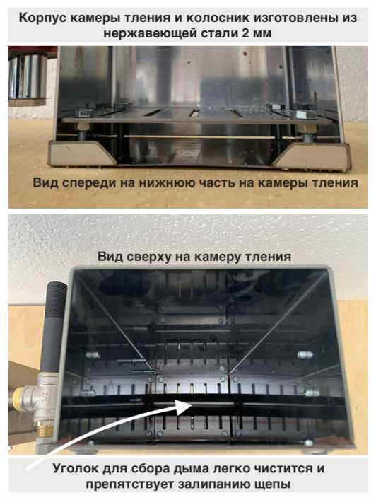 Функциональная конструкция, предусматривающая вместительную камеру тления, большую камеру очистки. Обе каиеры легко открываются для чистки от продуктов сгорания и смол. Пластины, на которых осаждаются смолы в камере очистки изготовлены из нержавейки, легко снимаются, легко...